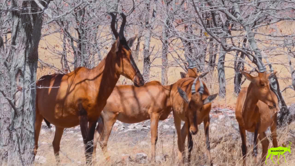 Native to southern Africa, particularly Namibia, Botswana, and South Africa. It is known for its rich reddish-brown coloring and slightly broader horn base. Red hartebeest are well adapted to drier savanna regions.